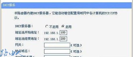 (2)在路由器管理界面单击左侧的“DHCP服务器”选项,在弹出的“DHCP设置”窗口中,单击“启用”按钮。“地址池开始地址”和“地址池结束地址”选项IP地址的第4段是用户可以任意输入的部分。我们可以分别输入100、200(需要注意的是输入的开始地址必需小于结束地址,而且开始地址不能是0、1,结束地址不能是255);